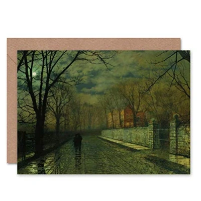Wee Blue Coo JOHN ATKINSON GRIMSHAW PAINTINGS FIGURES MOONLIT LANE RAIN GREETING CARD