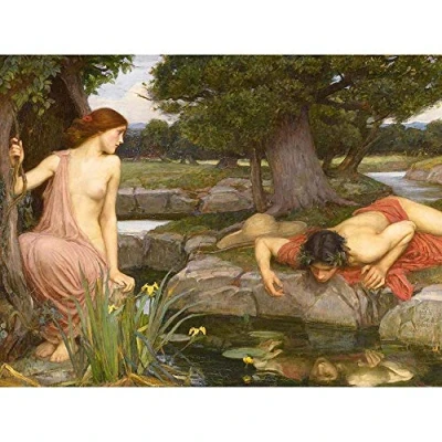Wee Blue Coo John William Waterhouse Echo Narcissus Old Master Painting Art Print Poster Wall Decor 12X16 Inch
