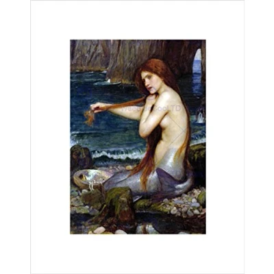 Wee Blue Coo JOHN WILLIAM WATERHOUSE MERMAID OLD MASTER BLACK ART PRINT B12X759