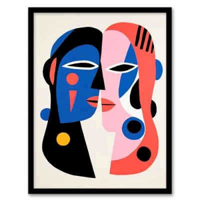 Wee Blue Coo Just the Two of Us Couple in Love Abstract Cubist Pink Oil Painting Artwork Framed Wall Art Print A4