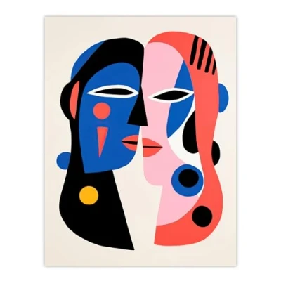Wee Blue Coo Just the Two of Us Couple in Love Abstract Cubist Pink Oil Painting Large Wall Art Poster Print Thick Paper 18X24 Inch