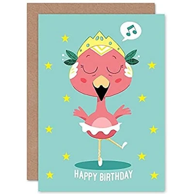 Wee Blue Coo Kawaii Flamingo Ballet Birthday Greeting Card With Envelope Blank Inside Premium Quality