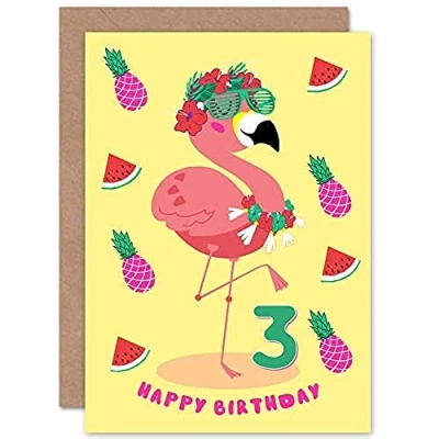 Wee Blue Coo Kawaii Flamingo Party 3rd Birthday Greeting Card With Envelope Blank Inside Premium Quality