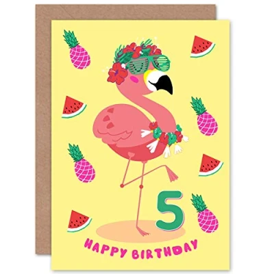 Wee Blue Coo Kawaii Flamingo Party 5th Birthday Greeting Card With Envelope Blank Inside Premium Quality