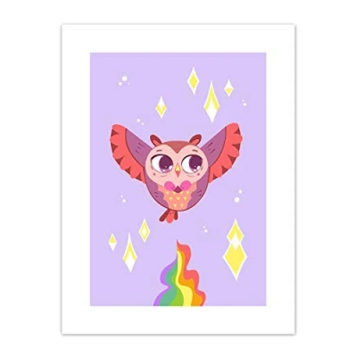Wee Blue Coo Kawaii Owl Flying Art Print Canvas Premium Wall Decor Poster