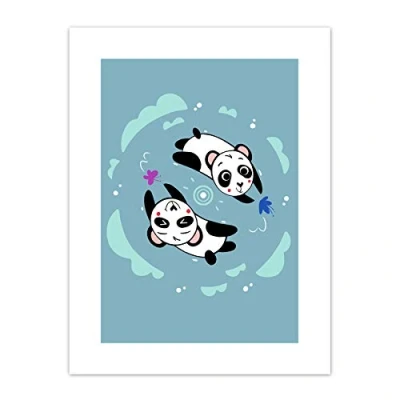 Wee Blue Coo Kawaii Panda Friends Art Print Canvas Premium Wall Decor Poster