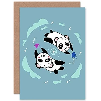 Wee Blue Coo Kawaii Panda Friends Greeting Card With Envelope Inside Premium Quality
