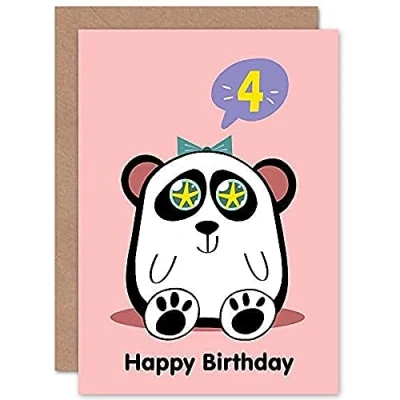 Wee Blue Coo Kawaii Panda Star Happy 4th Birthday Greeting Card With Envelope Blank Inside Premium Quality