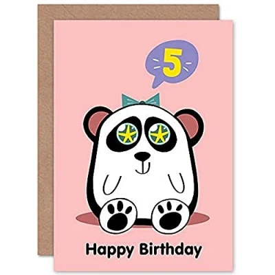 Wee Blue Coo Kawaii Panda Star Happy 5th Birthday Greeting Card With Envelope Blank Inside Premium Quality