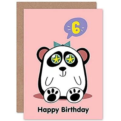 Wee Blue Coo Kawaii Panda Star Happy 6th Birthday Greeting Card With Envelope Blank Inside Premium Quality