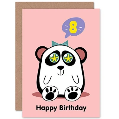 Wee Blue Coo Kawaii Panda Star Happy 8th Birthday Greeting Card With Envelope Blank Inside Premium Quality