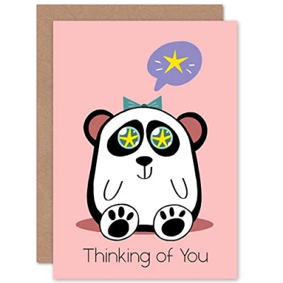 Wee Blue Coo Kawaii Panda Star Thinking of You Greeting Card With Envelope Blank Inside Premium Quality