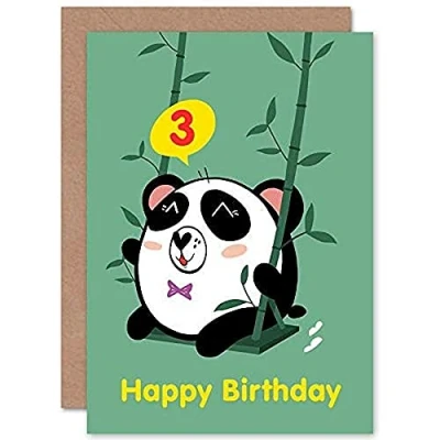 Wee Blue Coo Kawaii Panda Swing 3rd Birthday Greeting Card With Envelope Blank Inside Premium Quality