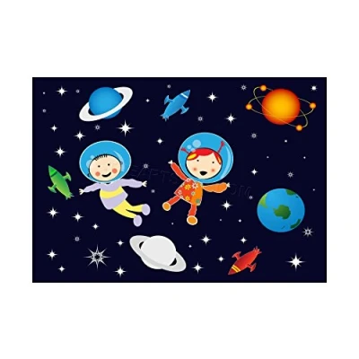 Wee Blue Coo Kids Astronauts Planets Stars Wall Art Print