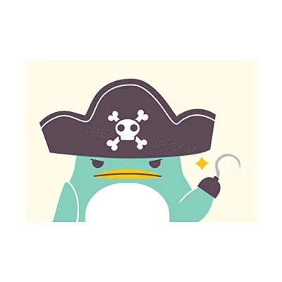 Wee Blue Coo Kids Children Pirate Penguin Illustration Cartoon Wall Art Print