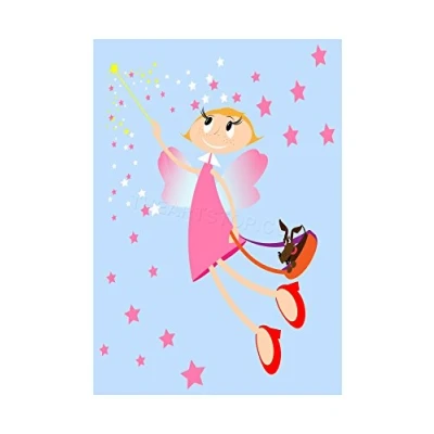 Wee Blue Coo Kids Fairy Wings Stars Wand Wall Art Print