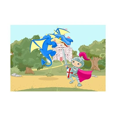 Wee Blue Coo Kids Fairytale Castle Knight Fight Dragon Wall Art Print