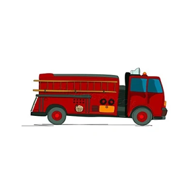 Wee Blue Coo Kids Fire Truck Cartoon Illustration Children Wall Art Print