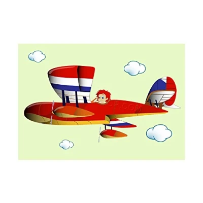 Wee Blue Coo Kids Flying Airplane Illustration Cartoon Wall Art Print
