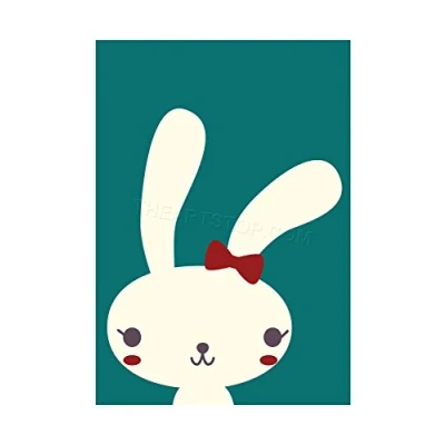 Wee Blue Coo Kids Rabbit Bunny Illustration Bow Cartoon Wall Art Print
