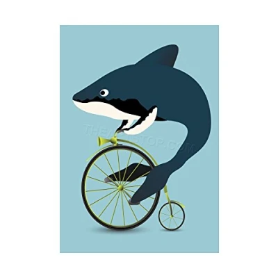 Wee Blue Coo Kids Shark Penny Farthing Funny Fish Wall Art Print