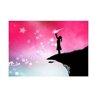 Wee Blue Coo Kids Silhouette Pink Sky Stars Girl Wall Art Print