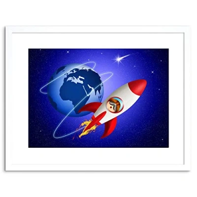 Wee Blue Coo KIDS SPACE SHIP ROCKET SPACEMAN EARTH FRAMED PRINT F97X4332