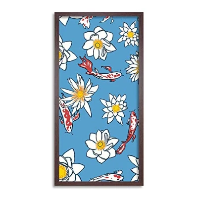 Wee Blue Coo Koi Carp Fish Lily Pond Graphic Long Panel Framed Wall Art Print