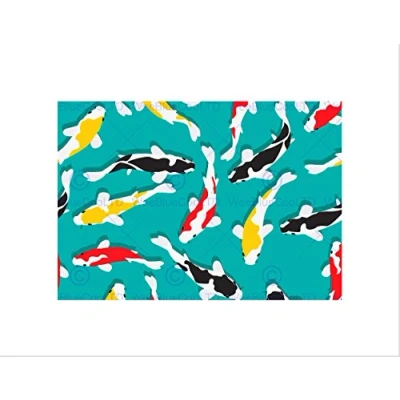 Wee Blue Coo Koi Fish Pattern Illustration Water Picture Wall Art Print