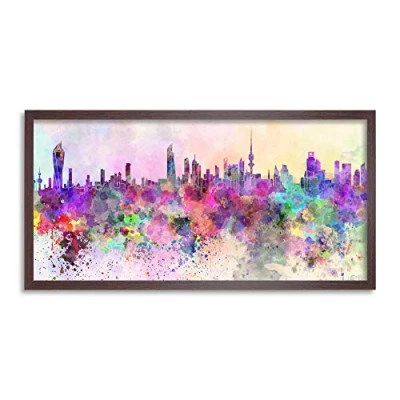 Wee Blue Coo Kuwait City Skyline Paint Splash Cityscape Long Panel Framed Wall Art Print