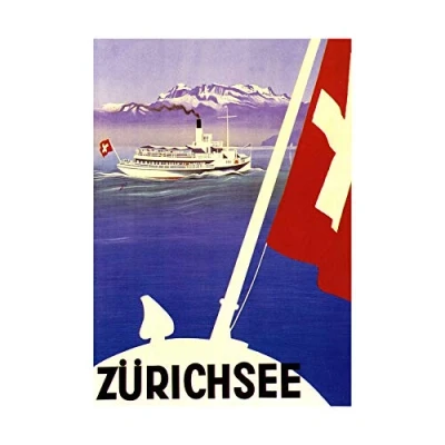 Wee Blue Coo Lake Zurich Switzerland Boat Alpine Mountain Flag Picture Wall Art Print