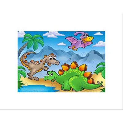Wee Blue Coo Landscape Dinosaurs Kids Nursery Playroom Wall Art Print