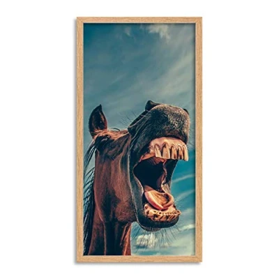 Wee Blue Coo Laughing Horse Face Long Panel Framed Wall Art Print