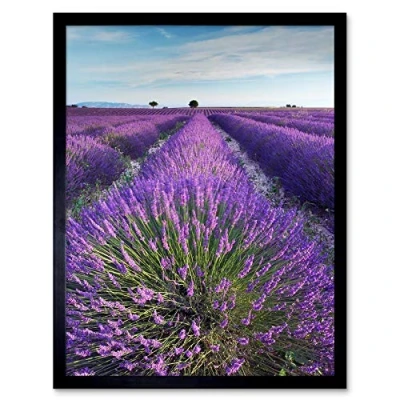 Wee Blue Coo Lavender Field Provence France Morning Flowers Art Print Framed Poster Wall Decor 12X16 Inch