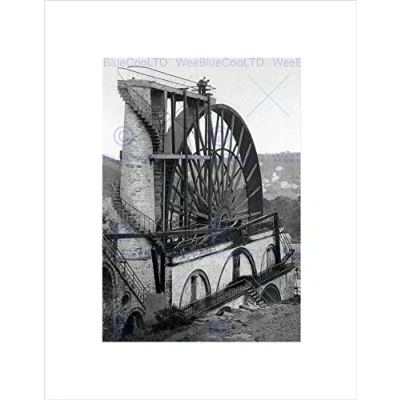 Wee Blue Coo Laxey The Wheel Isle Of Man Vintage History Old BW Wall Art Print