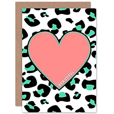 Wee Blue Coo Leopard Coral And Green Beautiful Reverse Greeting Card With Envelope Inside Premium Quality