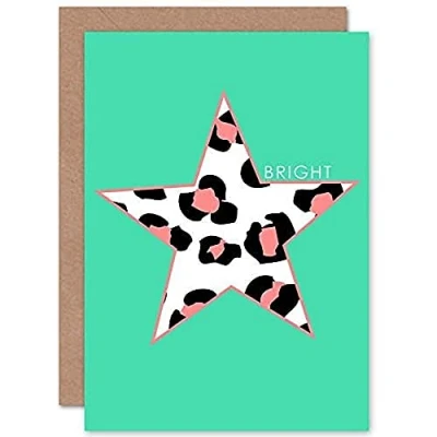 Wee Blue Coo Leopard Coral And Green Bright Greeting Card With Envelope Inside Premium Quality