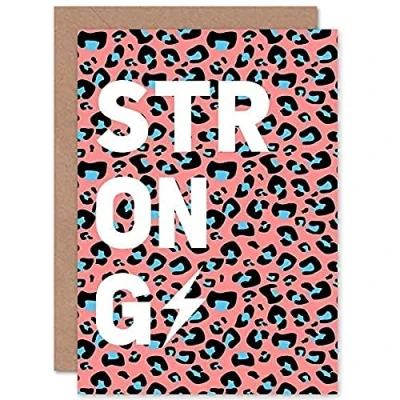 Wee Blue Coo Leopard Coral And Strong Words Greeting Card With Envelope Inside Premium Quality