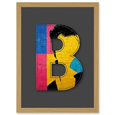 Wee Blue Coo Letter B Bright Abstract Face Yellow Decorative Graffiti Mural Alphabet Initial Stencil Artwork Framed Wall Art Print A4