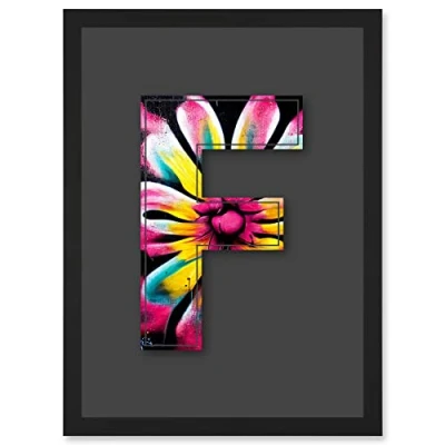 Wee Blue Coo Letter F Bright Flower Decorative Graffiti Mural Alphabet Initial Stencil Artwork Framed Wall Art Print A4
