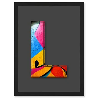 Wee Blue Coo Letter L Abstract Pink Yellow Decorative Graffiti Mural Alphabet Initial Stencil Artwork Framed Wall Art Print A4