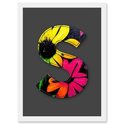 Wee Blue Coo Letter S Floral Wall Decorative Graffiti Mural Alphabet Initial Stencil Artwork Framed Art Print A4