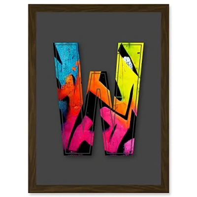 Wee Blue Coo Letter W Tagging Pink Yellow Decorative Graffiti Mural Alphabet Initial Stencil Artwork Framed Wall Art Print A4