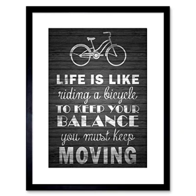 Wee Blue Coo Life Like Riding Bicycle Wood B&W Quote Framed Wall Art Print