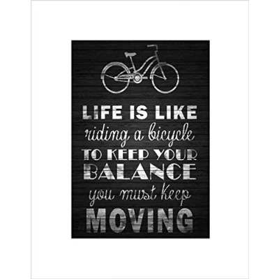 Wee Blue Coo Life Like Riding Bicycle Wood B&W Quote Motivation Wall Art Print