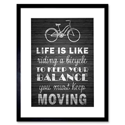Wee Blue Coo Life Like Riding Bicycle Wood Bw Quote Motivation Framed Print Picture F12X483