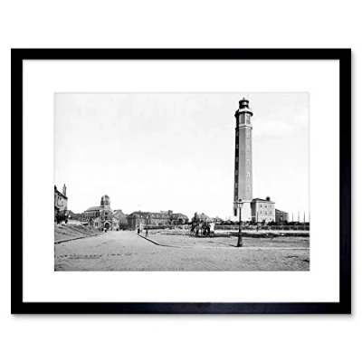 Wee Blue Coo Lighthouse And St Peter's Church Calais France 1895 Old BW Art Framed Wall Print