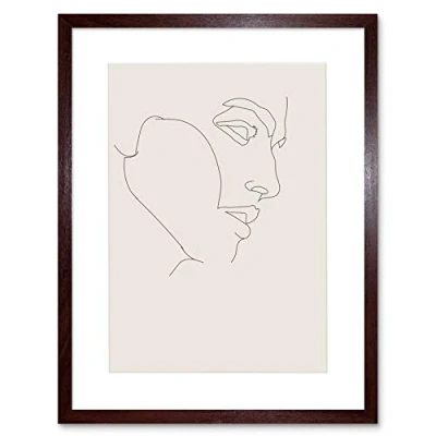 Wee Blue Coo Line Drawing Faces Man Minimalist Artwork Framed Wall Art Print 12X16 Inch