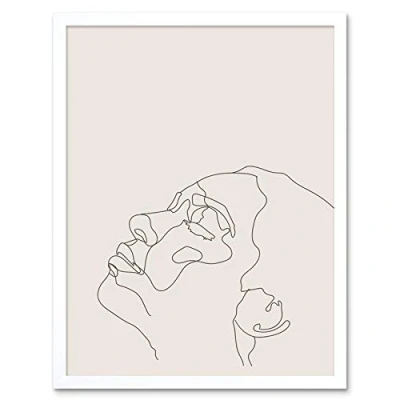 Wee Blue Coo Line Drawing Faces Woman Minimalist Art Print Framed Poster Wall Decor 12x16 inch
