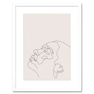 Wee Blue Coo Line Drawing Faces Woman Minimalist Artwork Framed Wall Art Print 12X16 Inch